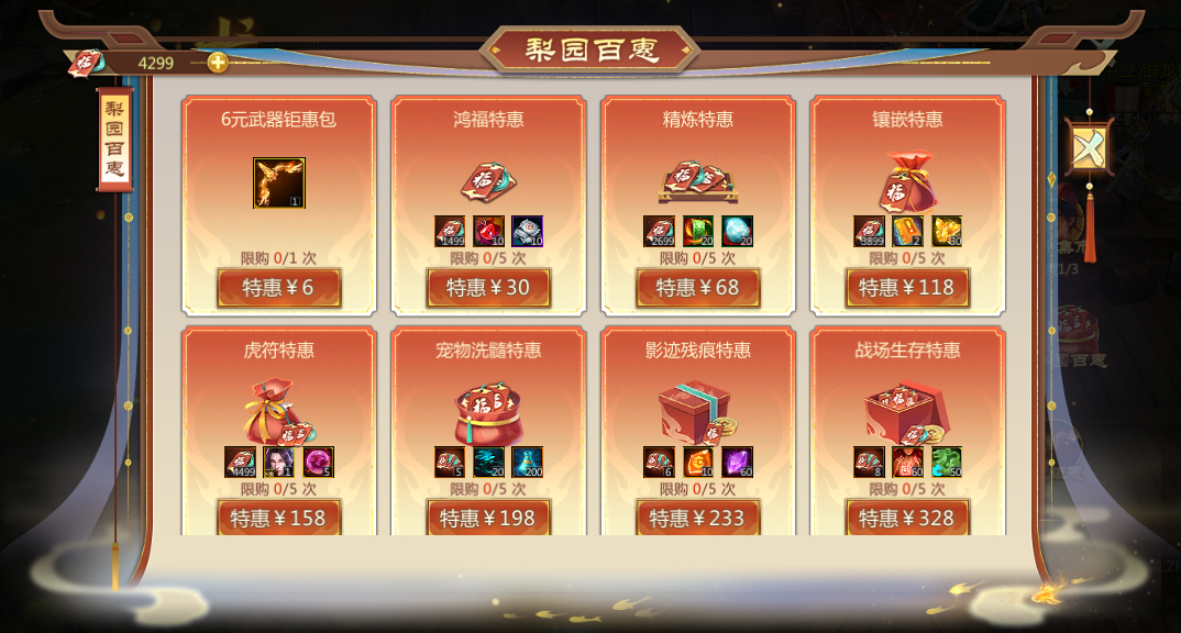 6元武器钜惠包将同步上架梨园百惠,有需要的仙术师这次可不要错过啦!