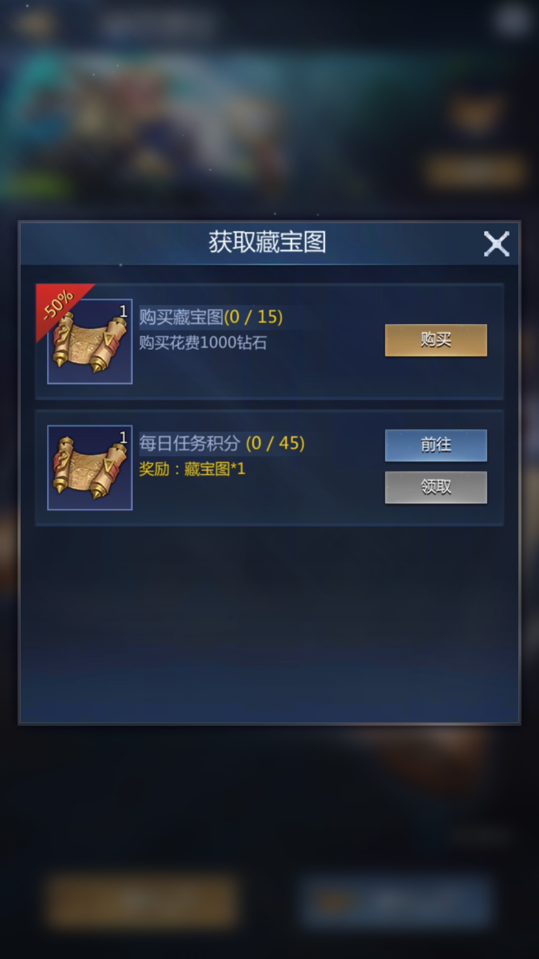 2.藏宝图可通过完成每日任务或者消耗钻石购买,购买上限为15张。