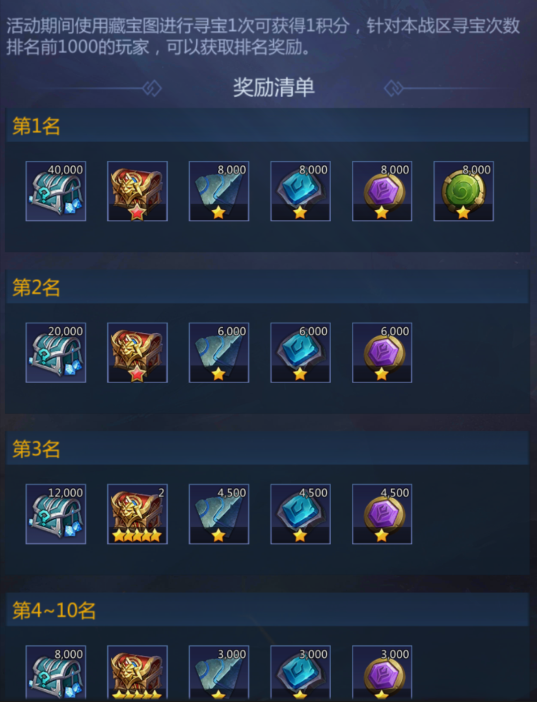 1.活动期间,消耗藏宝图寻宝,有机会获得丰厚奖励。