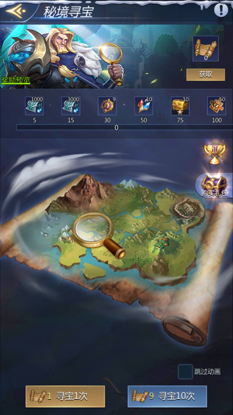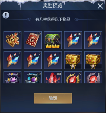 秘境寻宝奖励丰厚,有机会获得:五星英雄万能碎片、英雄召唤石、失落的圣物宝匣、宝箱、陨铁等其他奖励。