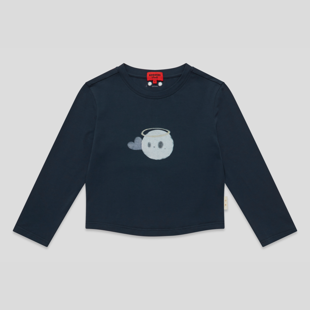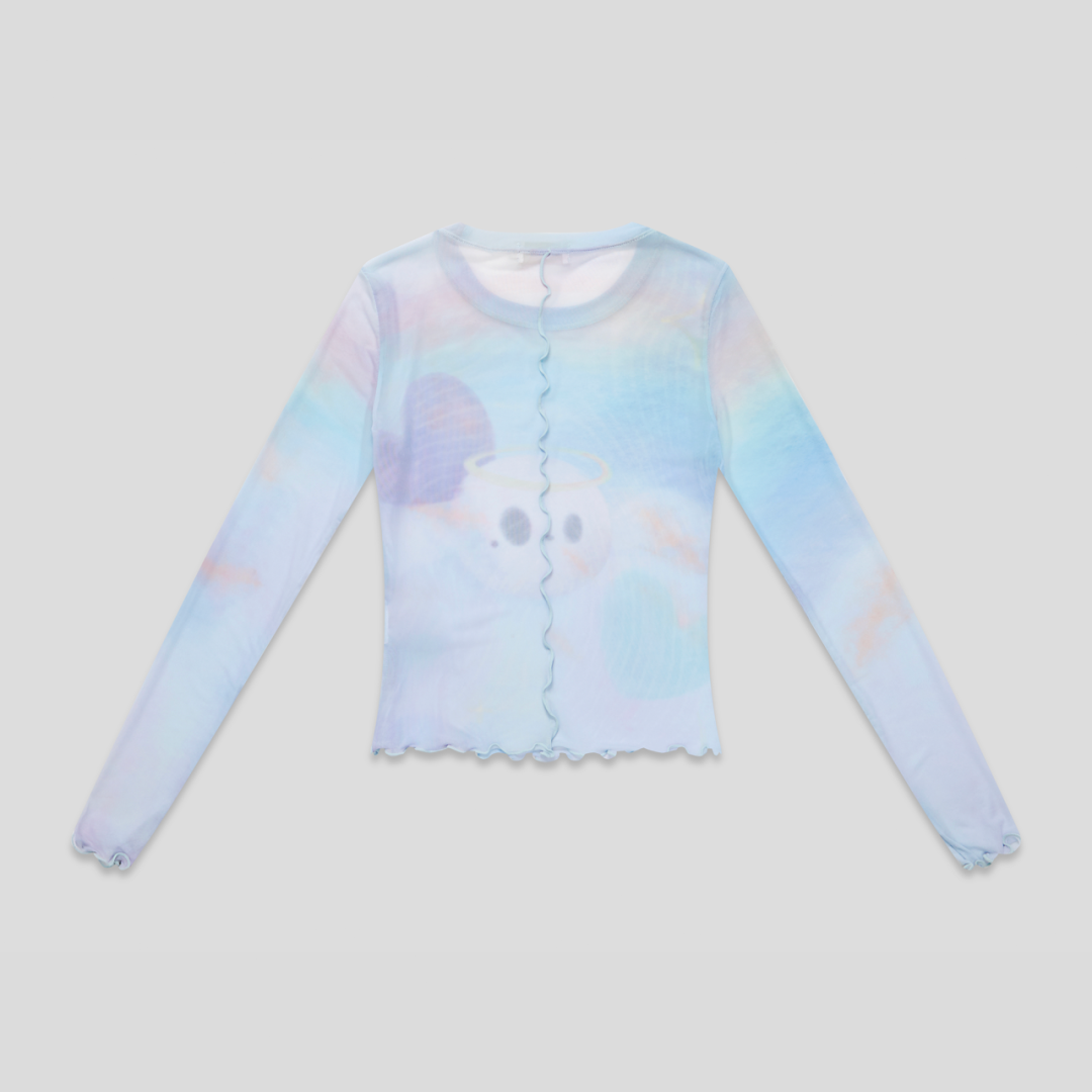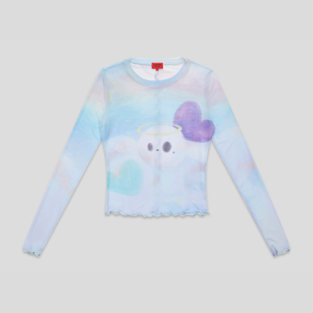 GOODEES 爱心小天使图案印花网纱长袖T恤