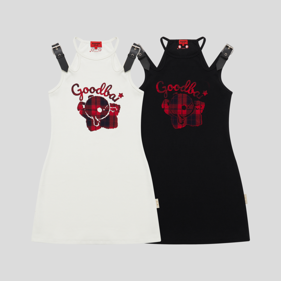 GOODEES 格纹贴布绣logo吊带连衣裙