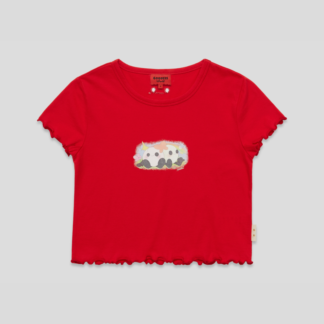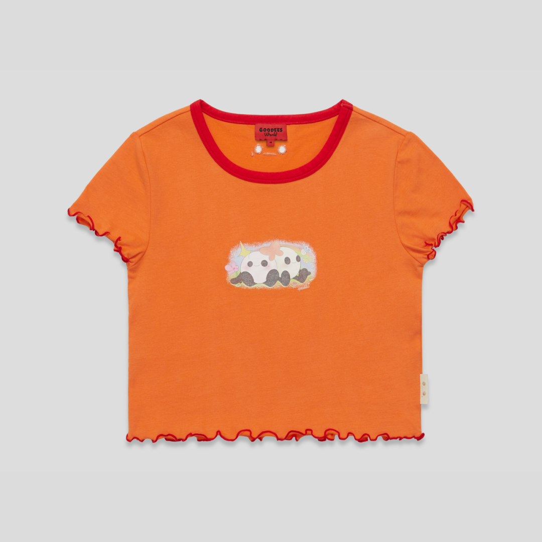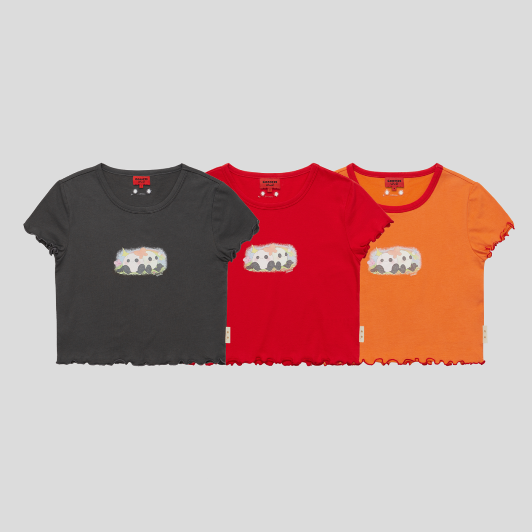 GOODEES 小彩虹图案印花波纹锁边短袖T恤