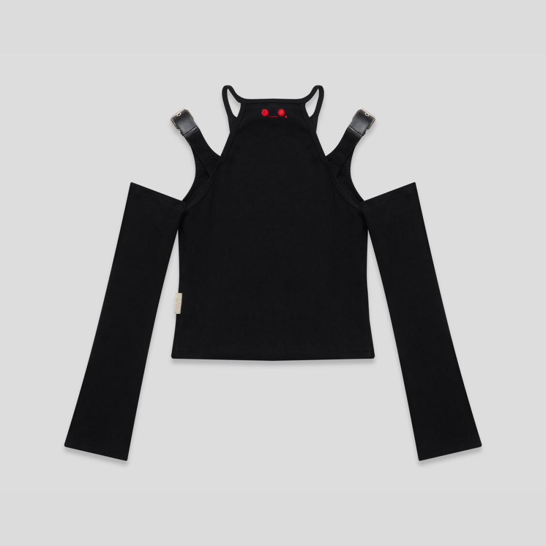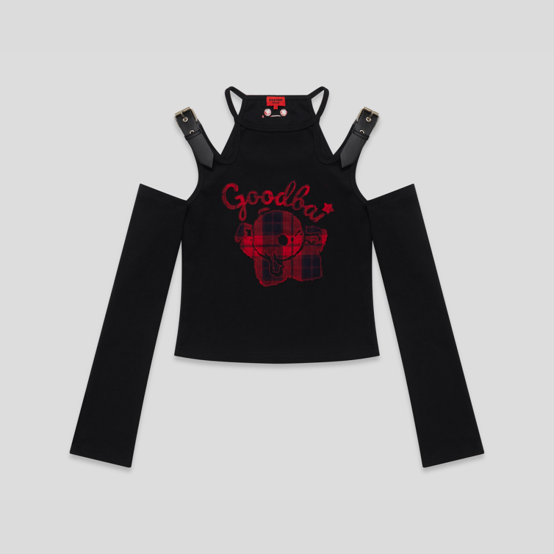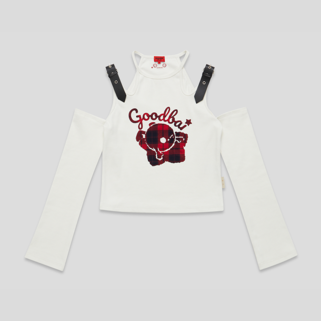 GOODEES 格纹贴布绣logo露肩长袖T恤
