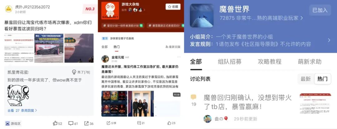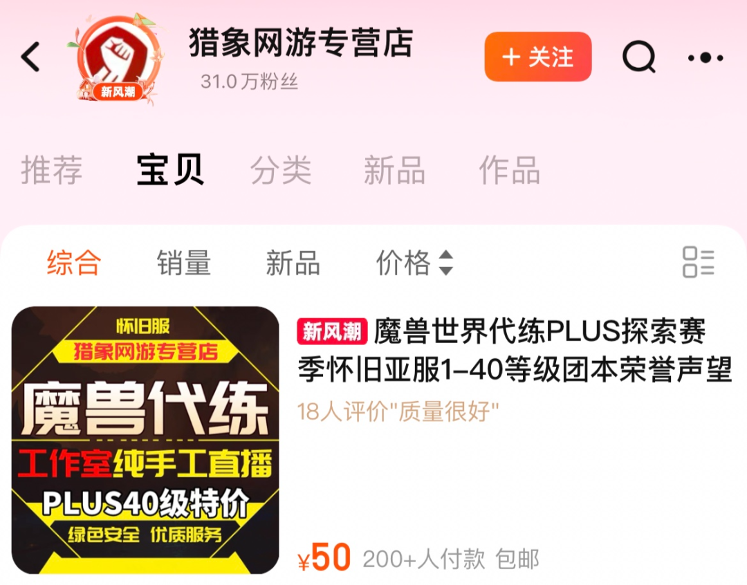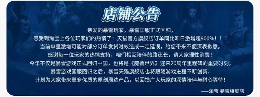 点点是魔兽世界最早的一批淘宝代练之一,从一名在别人的金团里做“打手”的代练,到后来注册自己的淘宝店,进阶的不仅是游戏,还有他自己也走进了婚姻殿堂。2023年那个停服时刻到来之前,他们曾做出过不同的计划,老王选择再开一个卖实体商品的店铺,醋宝和丈夫选择休息一段时间,点点则考虑转战国际服,或是做其他游戏的代练……从正式停服到如今“复合”,一年多的时间说长不长,说短不短,给人的感觉像是两家公司并没有撕破脸拉黑删除对方。而是仿佛经历完另一种意义上的离婚冷静期后,你看看我,我看看你,发现没有鲍比·考迪克以后,彼此还是可以继续一起过。人们常说“小别胜新婚”,暴雪和网易的这次“复合”所产生的热烈情感,则是集中体现在了淘宝的代练行业上。猎象网游是一家拥有30万粉丝的店铺,老板最初想到做代练业务是因为多年前和朋友一起玩魔兽,帮朋友打时,对方会以充话费之类的方式表示感谢。后来发现代练其实是一种普遍存在于玩家中的需求,于是就开了一家淘宝店:在停服之前,猎象网游在魔兽代练业务上一个月能有100万左右的销售额,魔兽的代练业务峰值时能占到整个店铺的60%。所以停服对于猎象网游来说也是一次不小的打击,停服之后,原本做魔兽代练的成员中有70%-80%的人都选择了离开,只有剩下的小部分人会尝试做新的游戏的代练。选择留下来去国际服的魔兽代练们,则面临着卡顿等问题,并且需求也远没有国服那么大,如果不是国服的回归,也许他们终有一天也会离开艾泽拉斯大陆。暴雪官宣回归的新闻出来后,不仅有老玩家重新找上门咨询代练业务,还有不少新玩家来咨询有没有新手教学、陪玩、打团副本等业务。猎象网游已经准备好了组建线下团队,等到魔兽国服正式回归的那天,这里又会和之前一样,成为连接艾泽拉斯与现实世界的一个锚点。玩家们通过淘宝链接起的不只是艾泽拉斯,还有《炉石传说》的酒馆,《守望先锋》里的漓江塔等。现实世界常常有难以实现的目标,游戏世界里也是一样,从魔兽的橙色武器到炉石的橙色卡牌,不同的游戏里都有需要玩家花费时间、金钱以及运气才能获得的奖励。代练就像往返于虚拟与现实的搬运工,把游戏世界里的成就感,带回给现实世界里疲于奔命的游戏玩家。不同的玩家对暴雪回归有不同反应,有的感慨自己终于不用靠加速器去亚服玩游戏了:有的打开直播看黄旭东去网易门口扮财神发糖,看网易如何重铸拆成碎片的战斧血吼:进入淘宝暴雪旗舰店,你会看到下面这则醒目的店铺公告:较官宣前一日激增超900%的订单不会是上限,只是重逢时寒暄的一句“好久不见”。虽然没有游戏上线的具体时间,但在暴雪和网易联合致玩家的回归信中提到:“第一款回归的游戏将在夏天与大家重逢”。很多人猜测这款游戏大概率会是魔兽世界,也许老王,醋宝和点点会在夏天之前再次为人生拟下新的计划。雷蒙德在《漫长的告别》中写到:“说一声再见,就是死去一点点。”,对于魔兽的老玩家们来说,已经道过一次的再见无可避免让他们都又老去了一点。可即使变老了,玩家们知道自己依旧可以保护艾泽拉斯、在炉石传说中抽出逆转战局的那张卡,或是在守望先锋里创造一些亮眼时刻……![]()