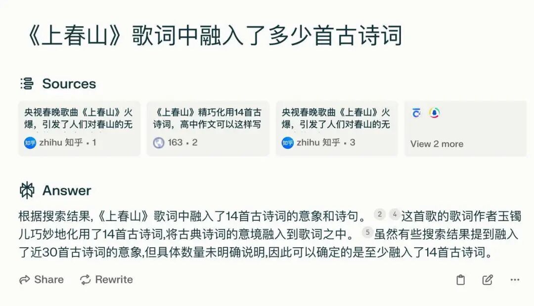 英伟达创始人黄仁勋最爱用的 AI 聊天机器人是什么?《连线》杂志的采访揭开了谜底——Perplexity。比起 ChatGPT, Perplexity 的热度并不算高,但它在 AI 界却是崭露头角的明星公司。没有狂轰滥炸的广告宣传,也没有声嘶力竭的吆喝,仅凭创始人的苦口婆心和一群忠实拥趸的口口相传,Perplexity 的月活跃用户便已轻松越过了千万的门槛,其在 iOS 与 Android 平台上的应用下载量,也已轻松破百万。在 AI 应用的层出不穷的今天,新老面孔的交替不断上演。然而, Perplexity 却始终在 a16z 定期发布的《全球最火的 50 个 AI 应用是哪些?》权威榜单中稳占一席之位。这款自诩为「世界上首个对话式答案引擎」的 AI 工具,其独特之处在于将 ChatGPT 式的问答和传统搜索引擎的链接列表相结合,开创出一种全新的搜索体验。如同昔日 Google 革新 Yahoo(黄页/电话簿)服务的历史一幕,Perplexity 也致力于彻底「干掉」搜索引擎,重塑我们获取和处理信息的方式。去年底,Perplexity 创始人 Aravind Srinivas 在社交平台 X 上单方面敲响了 Google 的丧钟。面对一家成立 25 年、市值高达 1.9 万亿美元的搜索巨头,Perplexity 大有一股优势在我的豪迈气势。它从不掩饰自己的野心,「Perplexity 是传统搜索引擎的替代品。」敢于公开「叫板」Google,初生牛犊不怕虎的 Perplexity 也是有几分底气的:尽管 Perplexity 自称为独特的答案引擎,但其简洁的页面设计和清晰可见的搜索框不禁让人联想到 Google 的风格,仿佛在暗示它与搜索引擎并无本质区别。「Home」代表的不仅是主页,更是用户提出问题的起点。无需冗长的引导,用户直接在搜索框中输入疑问,迅速建立起与答案之间的桥梁。与 Google 等传统搜索引擎相比,Perplexity 在提供答案的过程中多做了几步,也让用户的体验多了几分。例如,当用户好奇春晚大火的《上春山》歌词中究竟融入了多少首古诗词后,它不仅会精确地总结出答案,还会附上详细的信息来源,让用户对答案的出处一目了然。这一过程悄然展现了 AI 取代人类的潜力。它省去了用户在传统搜索引擎中逐个点击链接的繁琐步骤,同时自动整合分散在各个网页的信息,显著提升了用户获取信息的效率,让用户能够更加专注于理解信息本身。同样的问题摆在 Google 面前,它絮絮叨叨地讲了许多,到头来却只吐出了一个模棱两可的「数十首」。相较于那些恨不得在答案中夹杂广告的传统引擎,界面清爽,全程无广告的 Perplexity 堪称商业世界中的一股清流。当然,这样的设计理念也不得不面对棘手的问题:如何在不牺牲用户体验的前提下,实现商业的可持续性?大模型幻觉的「乱扯一通」仍旧难以避免,但标注信息来源的做法却在不经意间提升「答案引擎」的透明度,让我们在使用时也能多一份安心。在这个知识爆炸的时代,抛出问题不难,但要问得切中要害却不易。Perplexity 显然深谙此道,因此它在答案下方, 都细致地附上了与问题紧密相连的描述,引导用户找到与此相关的解答。互联网的海量信息,充斥着雷同与相似。譬如「苹果」一词,既可以指代日常所见的水果,也可以代表全球市值第一的科技巨头。为了获得更具针对性的答案,「Focus」绝对是不容忽视的功能之一。它能够帮助用户精确化问题的范畴,聚焦特定的信息源,从而在海量信息中筛选出最相关的选项。一旦用户划定了搜索领域,后续问题都将在此范围内集中搜索,尽可能避免牛头不对马嘴的答案。这一功能尤其适合那些追求深度和专业性的用户,若是一般性问题,倒也犯不着如此大费周章。Academic:学术学术文章和学术出版物中的专门搜索。Wolfram/Alpha:专注于计算数据和数学计算。YouTube:允许在 YouTube 内进行有针对性的搜索,提供时间戳和在平台内观看视频的选项。Reddit:专注于社区讨论和意见,提供精简的体验,过滤掉不相关的内容。对于国外的 AI 应用,显然我们早有心理预期,尽管 Perplexity 在中文回答方面表现尚可,但其英文回答更为详尽和条理清晰。