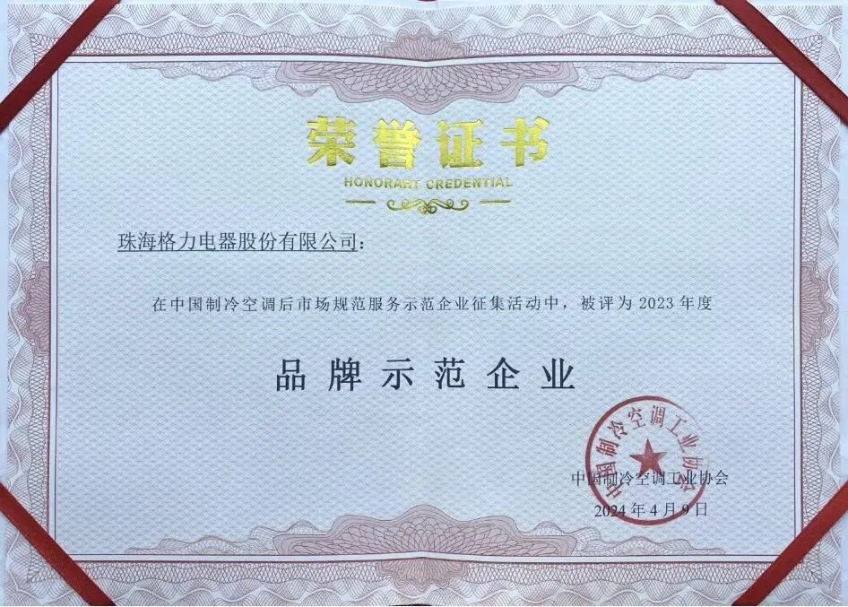 格力电器凭借优质的售后服务,连续3年荣获“中国制冷空调后市场规范服务行业品牌示范企业”。