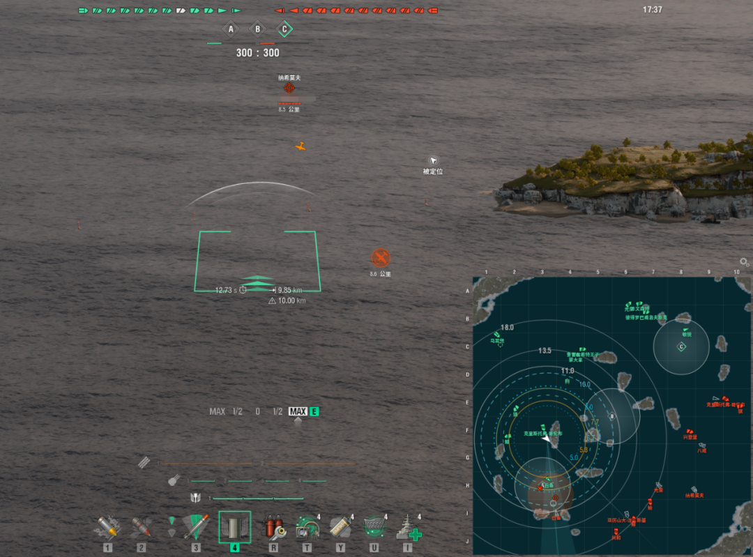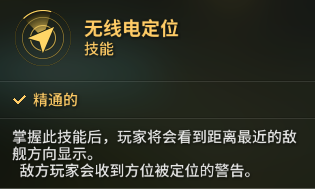 另一个非常重要的点是舰长技能中的无线电定位,时刻关注无线电定位可以了解到敌方潜艇的大致动向,甚至能判断敌方潜艇是否已经下潜。要注意,最大深度的潜艇并不会被定位,如果发现定位指示发生了突然性变动,就代表敌方潜艇可能已经潜入水下。