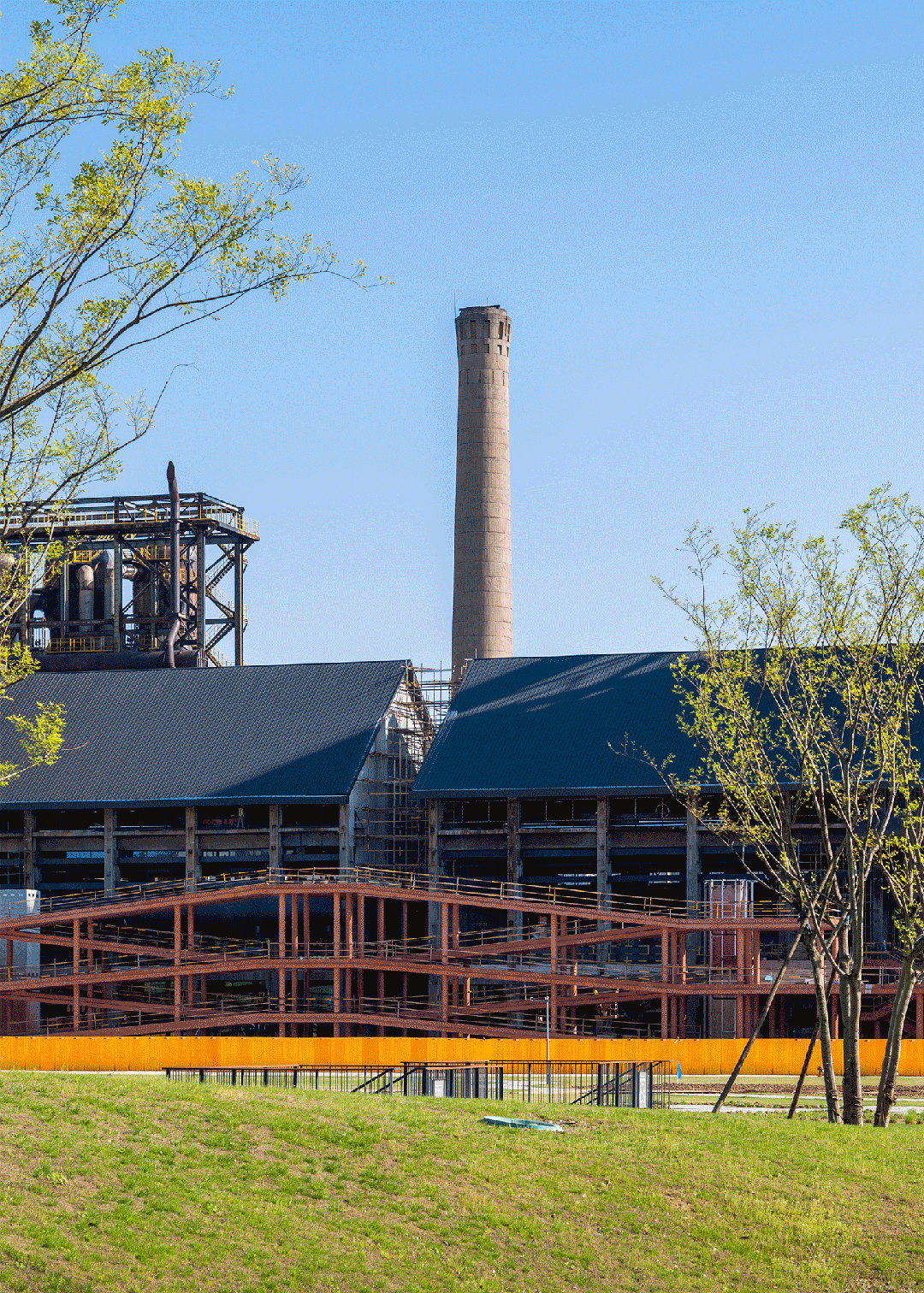 杭州钢铁厂建设于20世纪50年代,是浙江省建立的第一座钢铁厂,生产运营近60年后,于2015年正式关停。杭钢曾是杭州人民的骄傲,如今“大运河杭钢公园”的改造设计希望能够充分发扬场地特性,在创新性保留工业遗存的同时,呼应并尊重江南的地域性特征,期望成为不可复制的文化地标。