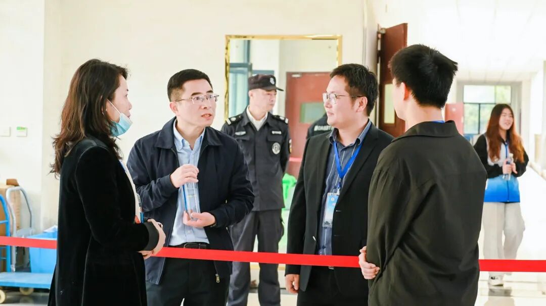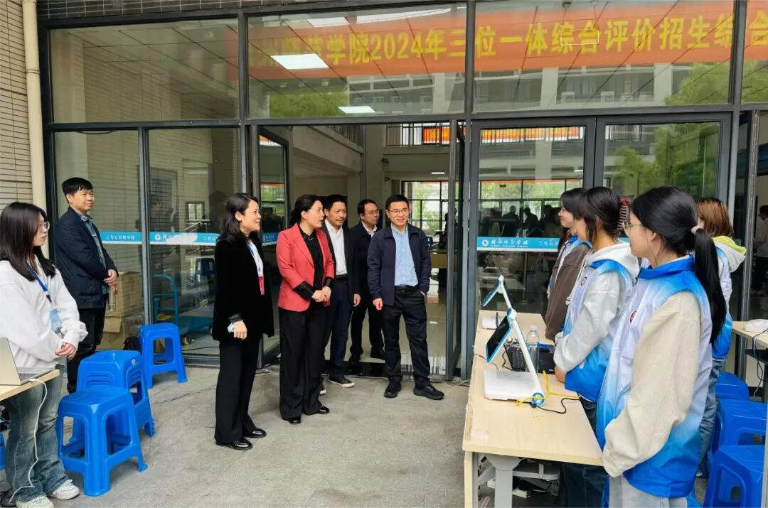 校长许慧霞、校党委副书记丁敢真、副校长舒志定到现场检查指导测试工作,省教育考试院领导到校对测试工作进行巡视。
