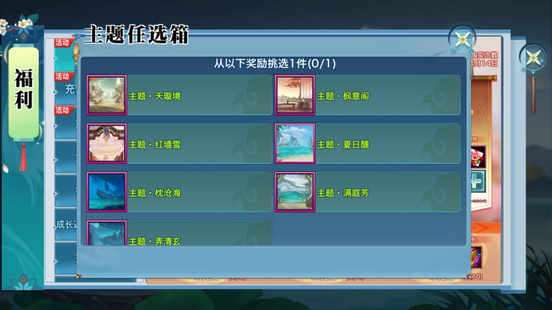 >>少侠购买4种不同档位礼包,可额外获得极品内丹随机箱、20000元气真气贡献任选箱、主题任选箱。