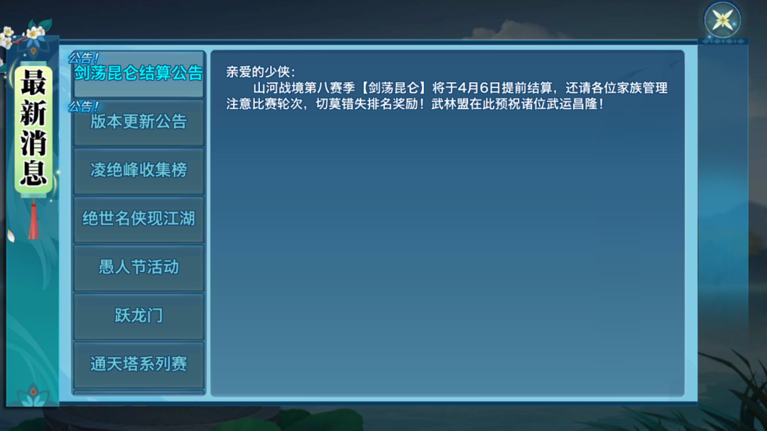 征战山河大世界的家族族长们注意啦!山河战境S8赛季【剑荡昆仑】将在4月6日提前结算,还在冲刺排名的家族注意比赛轮次,争取获取更高一档的排名奖励!