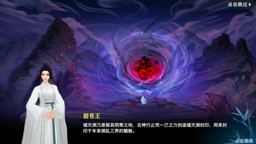 墟天渊地图里可自由探索,少侠们可以身临其境体验该场景哦!除了自由探索外,少侠们需帮助碧苍王与行止加固墟天渊封印,发掘墟天渊魑魅横行背后的真相。