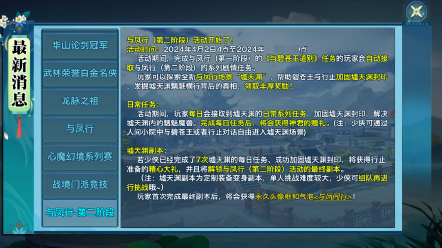 以上就是4月第一天的爆料啦!《与凤行》联动后续阶段和奖励小师妹已在整理中,将在近期展示给大家!少侠们可以先体验第二阶段专属剧情!