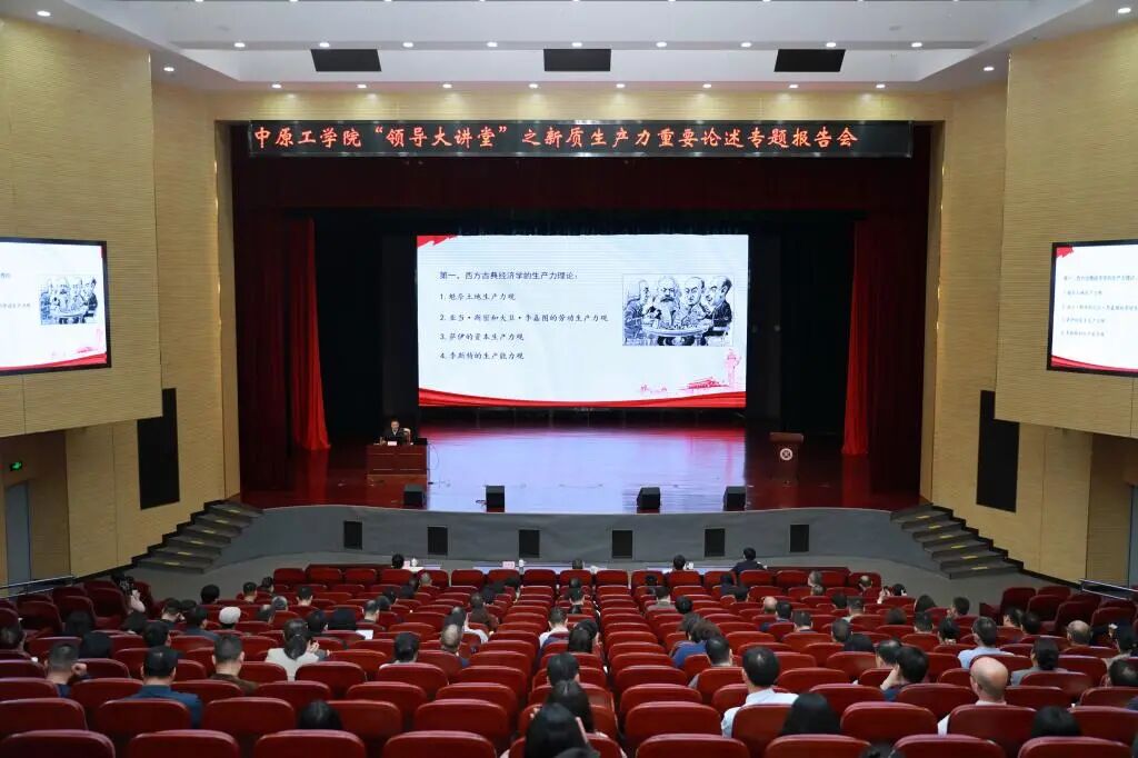 王承哲以“高质量发展需要新的生产力理论来指导”为题做了法治文化节首场宣讲暨中原工学院“领导大讲堂”专题报告。本次专题报告会也是我校党委理论学习中心组(扩大)深入学习习近平总书记关于新质生产力的重要论述和关于推动高质量发展的重要论述的专题学习会。围绕习近平总书记关于新质生产力的重要论述,王承哲从“坚持唯物史观,新质生产力重大思想产生的宏阔背景;坚持问题导向,新质生产力的时代价值;全面把握新质生产力的科学体系和本质特征;河南在加快发展新质生产力中的挑战机遇与战略策略”四个方面深入阐释了新质生产力的科学内涵、主要特征、实践要求和重大意义。宣讲内容站位高远、客观全面、内涵丰富,体现了立足国情省情实际的战略思考,为推进我校高质量发展提供了很好的理论指导。