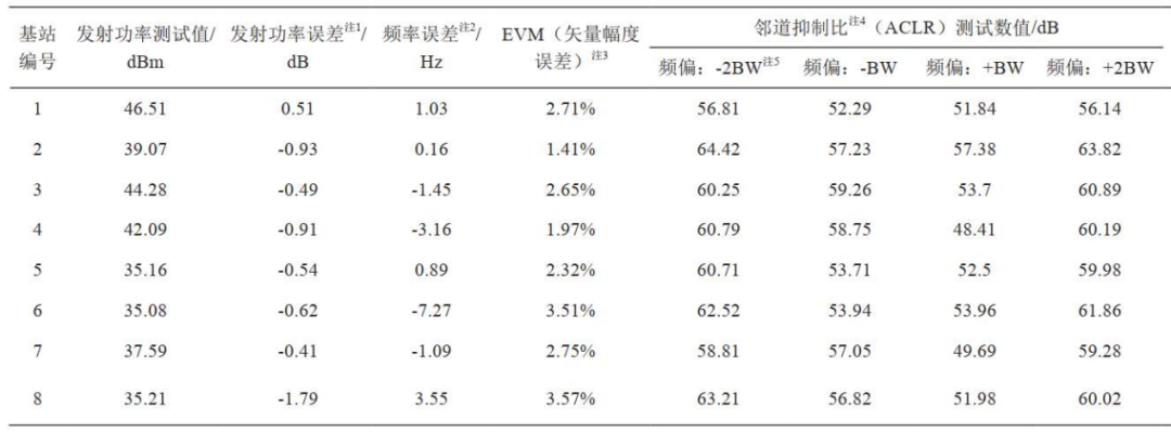 注3:EVM测试时的调制方式为64QAM,指标要求为≤8%;