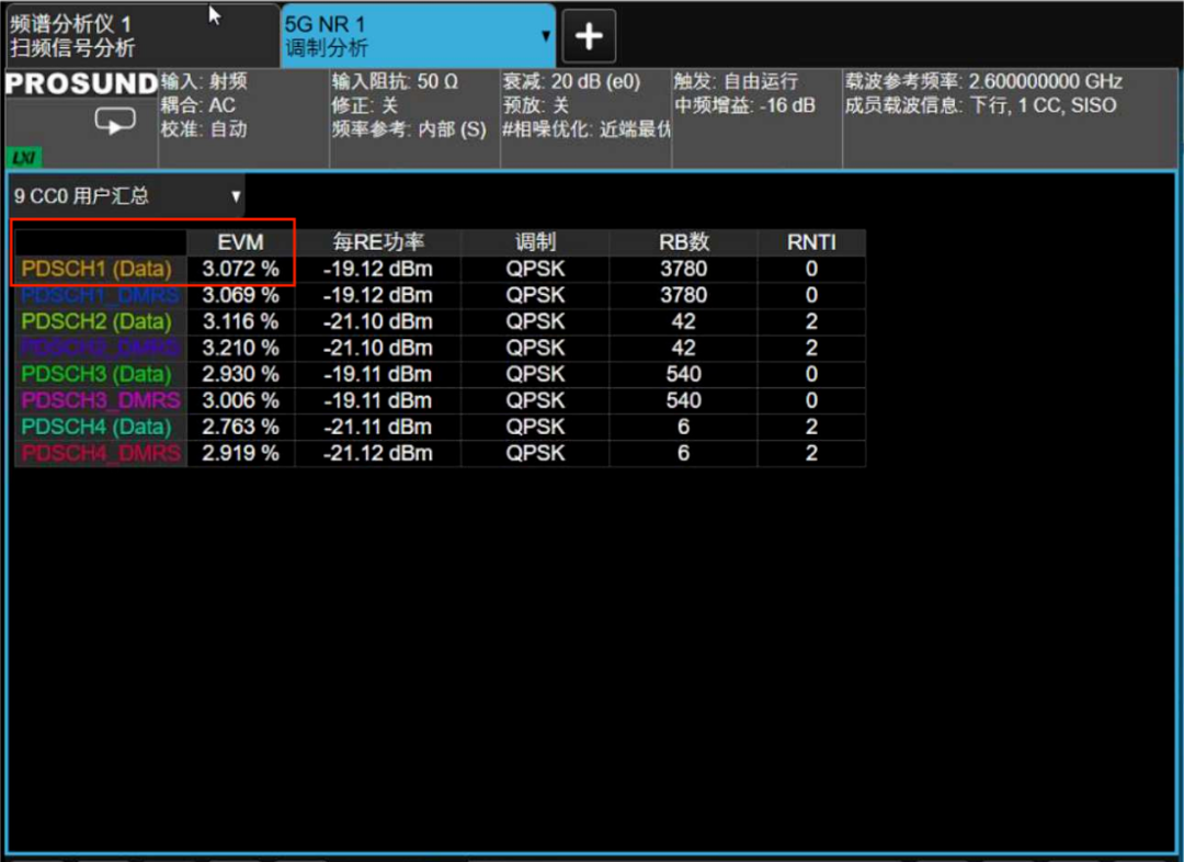 图2.5.1.2 5G信号的物理信道测量结果