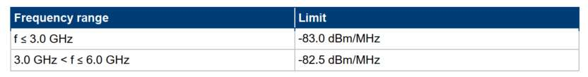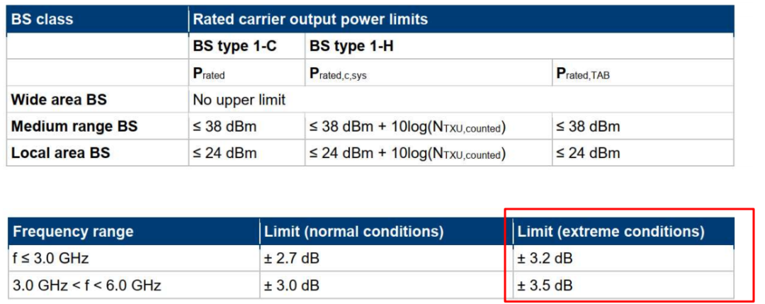 注1:发射功率误差的指标要求为不超过±2.5dB;