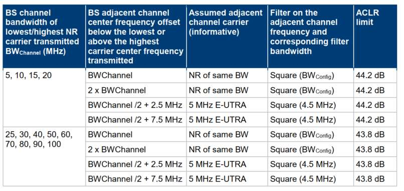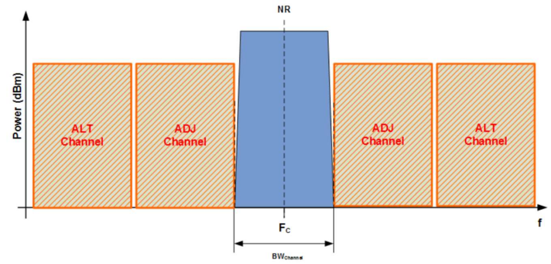 邻信道泄漏/抑制比(ACLR或ACPR)是用于衡量发射机线性度的重要参数。以5G 100MHz信号为例,ACLR的定义是:信道功率与偏移中心频率100MHz(相邻信道)和200MHz(相隔信道)的功率的比值。