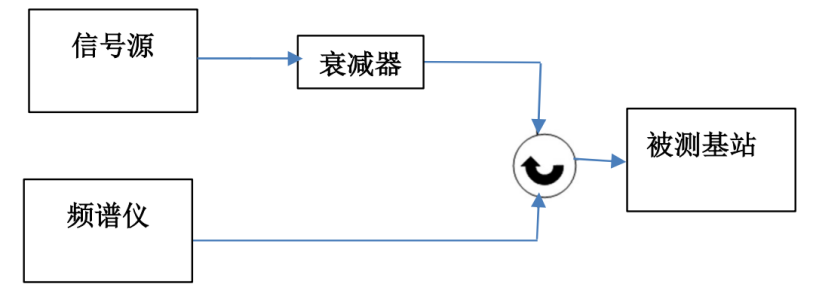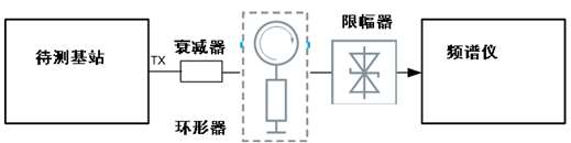因此,该测试项目需要限幅器,作用是在发射机开启时把射频功率限制在一个恒定的较小功率,同时保持发射机关闭时基底噪声不变。环形器可选配,主要作用是避免限幅器反射的反向大功率损坏基站。