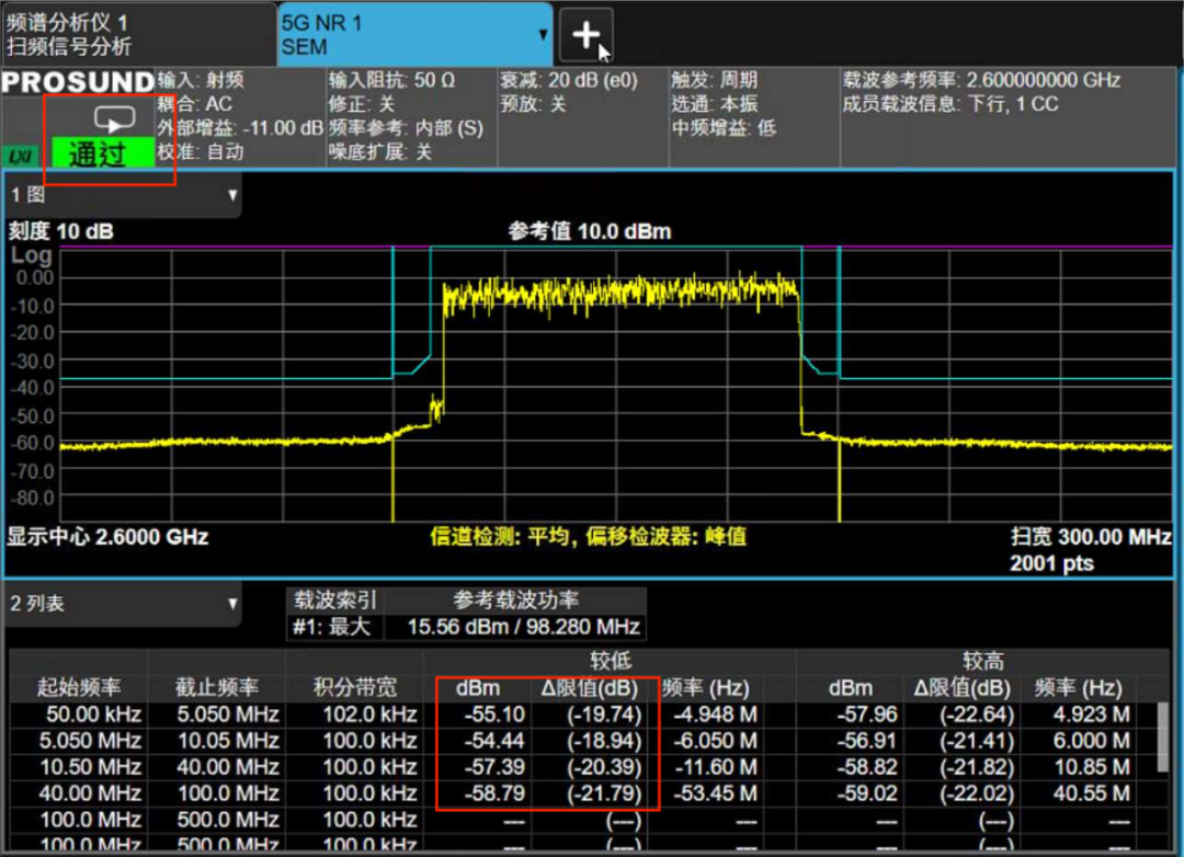 图2.4.2 5G 100MHz信号的频谱发射模版测试结果