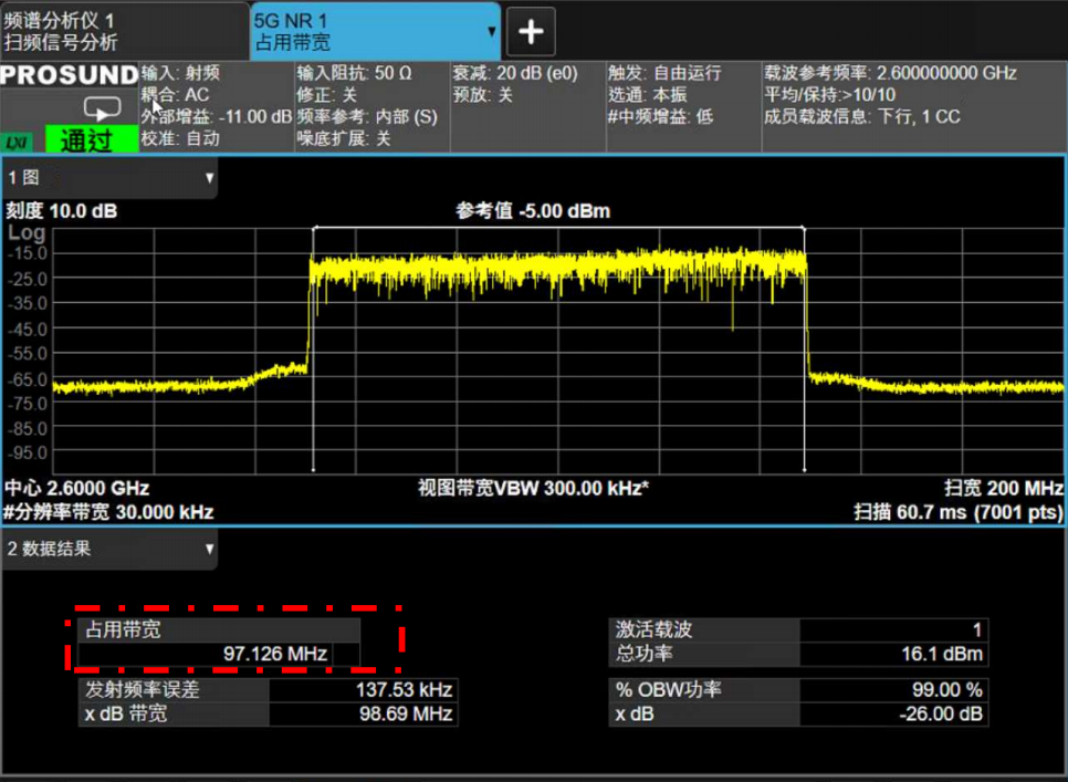 图2.4.4 5G 100MHz的占用带宽测试结果