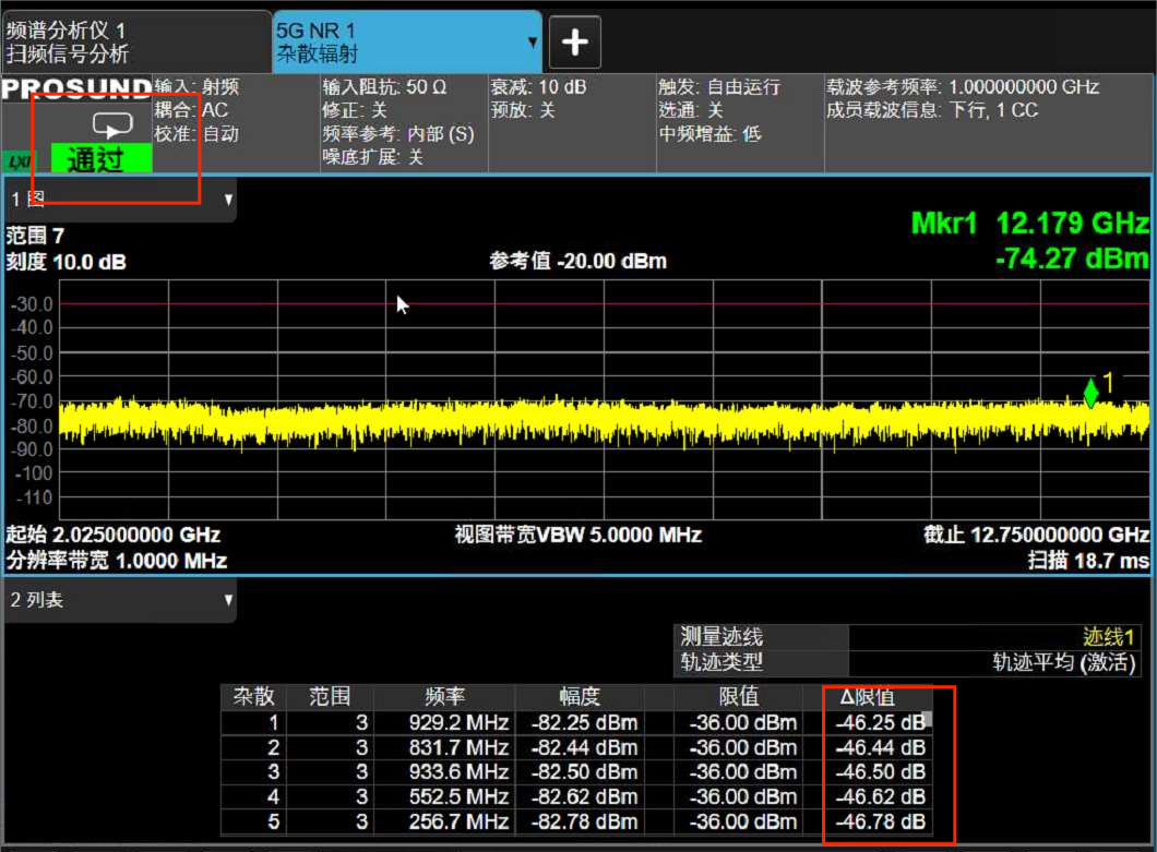 ②杂散测试需要遵守测试规范所定义的测量带宽(RBW)。