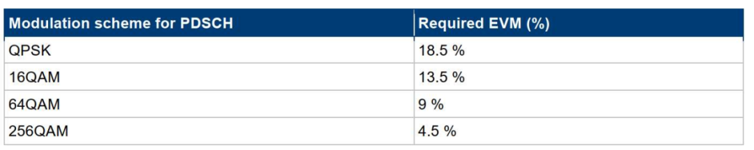 5G基站EVM测试指标:
