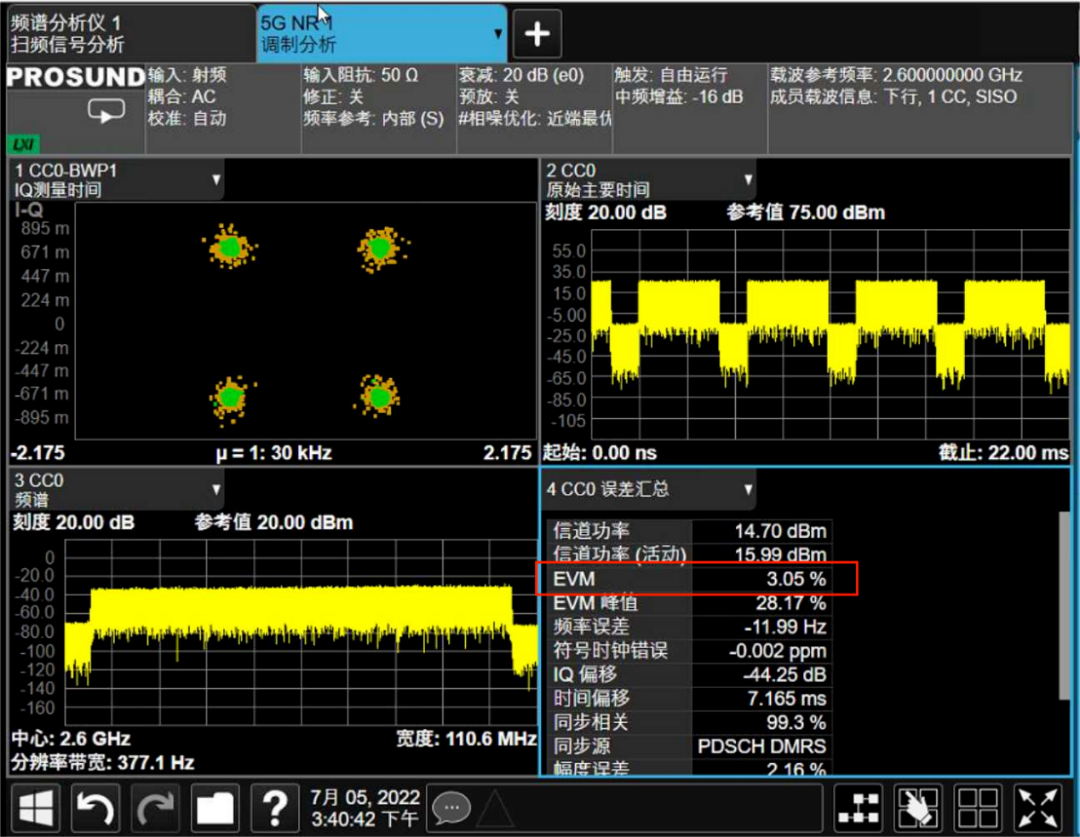 图2.5.1.1 5G信号的调制精度测量结果