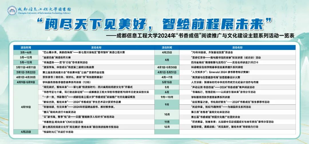 成都信息工程大学2024年“书香成信”阅读推广与文化建设主题系列活动一览表