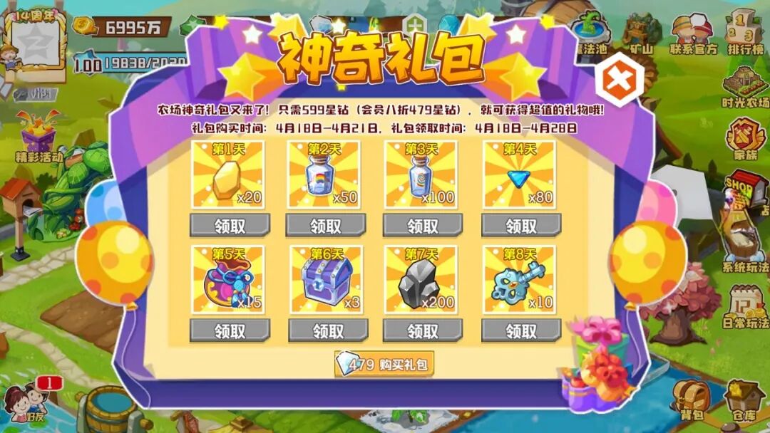 活动期间购买神奇礼包,每天登陆游戏即可领取对应奖励~