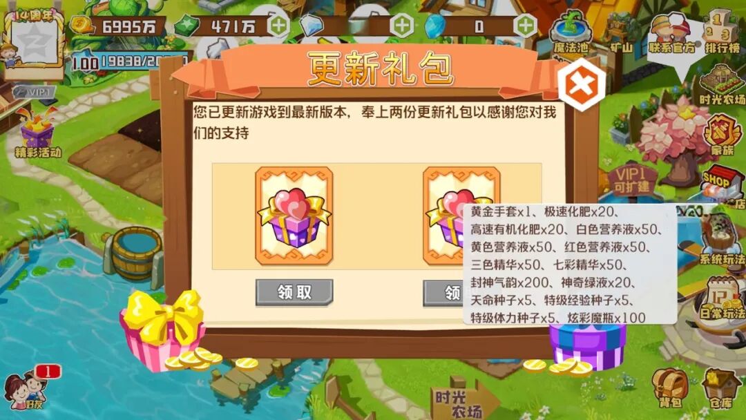 1、4月18日更新后,您需要更新至手机农场最新版本才能进入游戏,体验最新活动。同时我们奉上豪华更新礼包,更新后登录游戏即可领取。