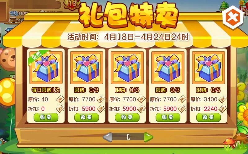 活动期间,每日登录游戏可领取免费礼包一个。使用粮票可享受超低折扣购买指定礼包~ 每种礼包有限购次数。