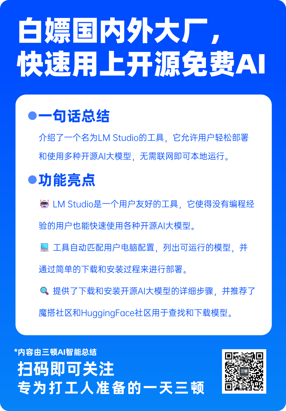 三顿三顿,那部署起来一定很麻烦吧,我不懂代码能用上嘛?有请文章的主角:LM Studio
