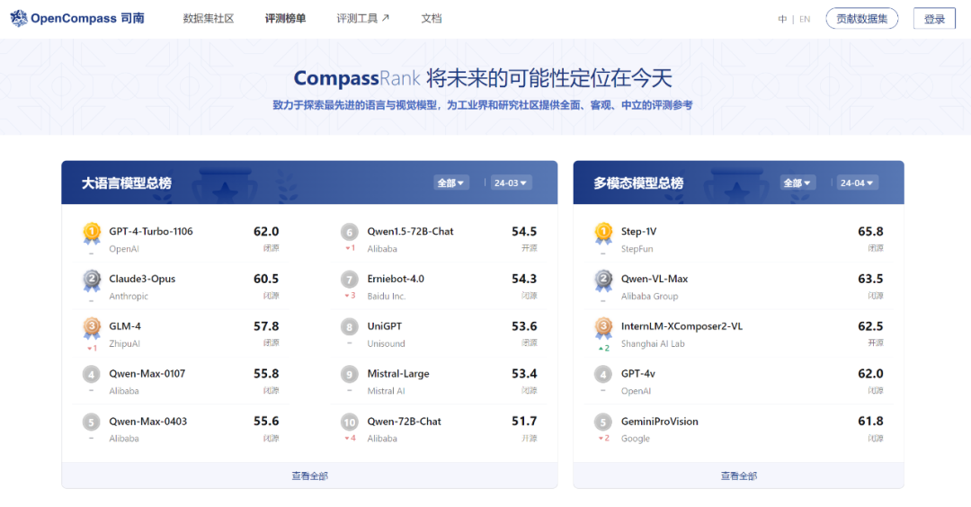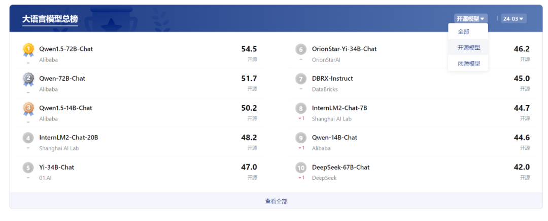 方便大家访问,我比较推荐的是这个国内权威的大模型评测榜单: