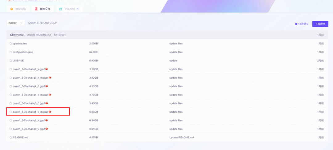 ▼ https://www.modelscope.cn/models/qwen/Qwen1.5-7B-Chat-GGUF/summary