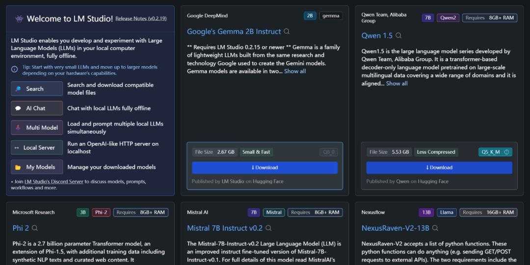 没错,打开软件,它会自动识别电脑配置,列出可以在你电脑上运行的模型: