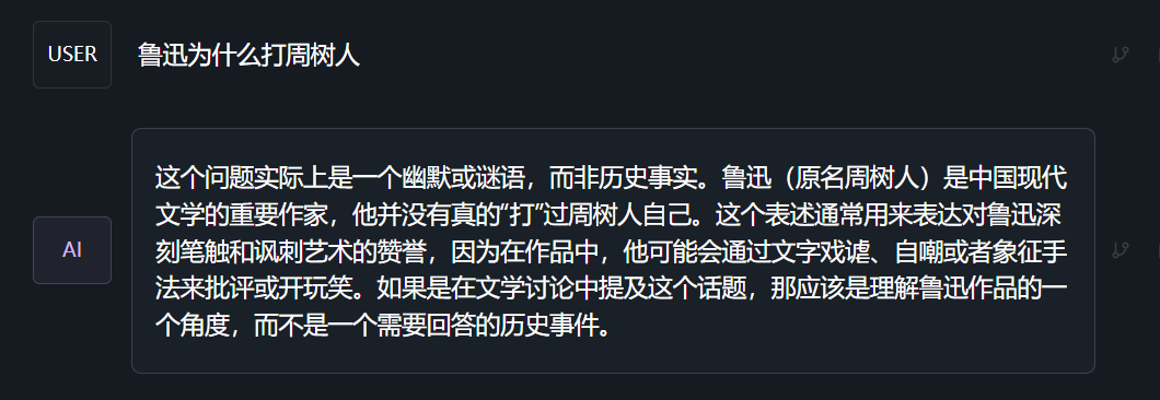 比如三顿这里安装的这个阿里的Qwen-7B版本,陷阱问题都能识别: