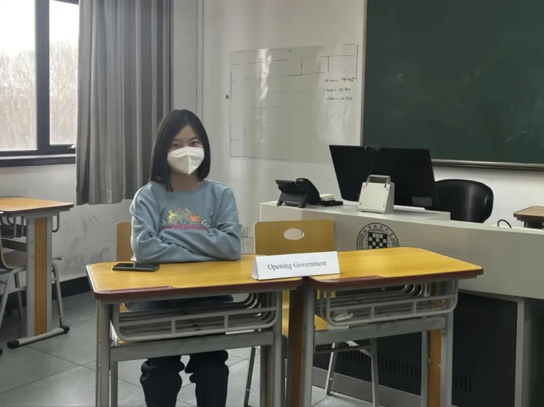 令她印象最深刻的一场比赛是大一寒假期间参加的英语辩论比赛(3rd Beijing Online Debate Inter-Varsity 2023)。当时的她由于经验不足,过度紧张,在比赛第一轮时发挥失利,但她并没有气馁,积极调整心态,寻找应对策略。随着参与的场次越来越多,她越来越从容,能够更加充分发挥自己的实力,最终在第四轮拿到了第一名的好成绩。回首往事,她非常感谢当初那个勇敢的自己,参加了英辩队的面试以及这场辩论比赛。参与英辩比赛使她收获颇丰,这段经历帮助她摆脱“口语焦虑”,也让她重拾了一部分被丢掉的自信。她认为人生的很多时候都需要勇敢地推自己一把,去尝试一些新的东西,才能发现自己更多的可能性。