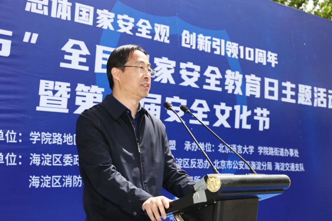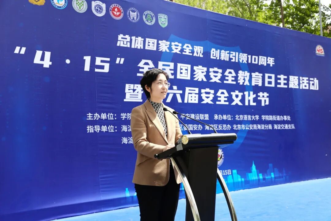 4月15日,2024年学院路地区“校地警”平安建设联盟“4·15”全民国家安全教育日主题活动暨第六届安全文化节开幕式在北京语言大学举行。学院路街道党工委副书记、办事处主任康云宣布活动开幕。活动现场举办了反恐特警装备展示及反恐宣传教育、国家安全知识宣传教育、烟热环境模拟逃生体验、灭火体验及模拟灭火体验、消防装备展示及体验、反诈互动体验、心肺复苏技能培训、海姆立克急救教学互动、禁毒教育展示宣传、触电预防及体验、反邪教教育展示及互动游戏、交通模拟驾驶体验互动游戏、醉酒行走VR体验互动游戏、国家安全主题中国书法传统文化体验、国家安全主题音乐会等内容。