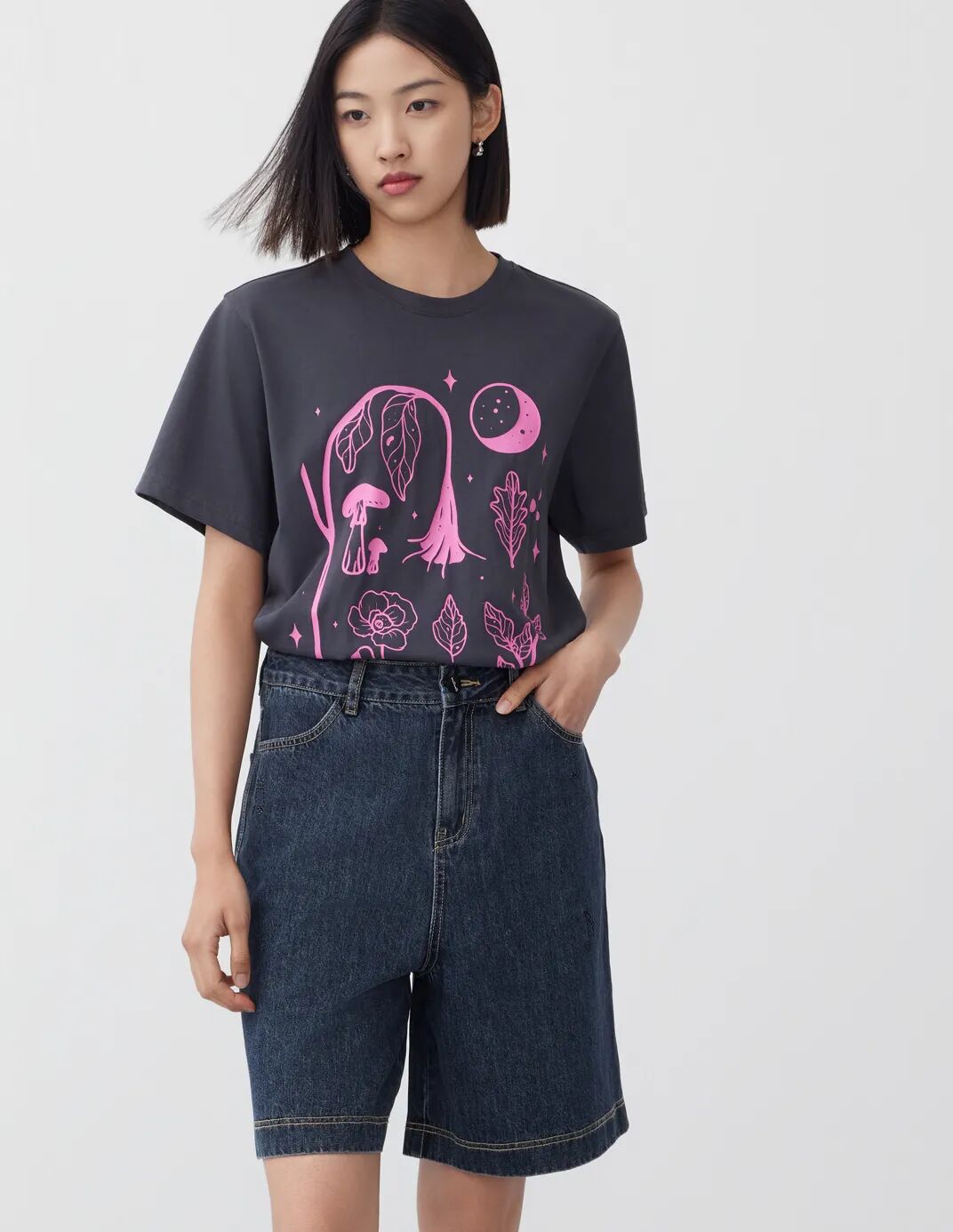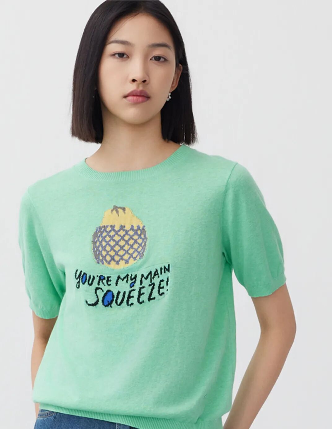 高饱和度、汁水丰富的果蔬水果,趣味幽默的波普花纹,印刷在tee上萌生出一种放松无畏的性格。采用棉质地为料底的T恤,良好的透气性,释放出夏季限定活力。