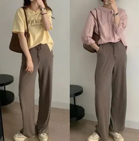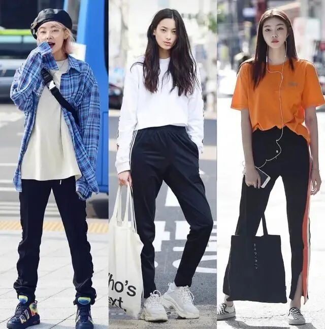 粉色系西裤是比较挑搭配的,搭配的不好也容易得到相反的效果,穿得不尽人意,可以学着这样搭配一件假两件的短款卫衣,灰色与白色的拼接,连接粉色西裤,在色彩上有一个循序渐进的过程,让人看了很舒适,凸显穿搭的高级感。