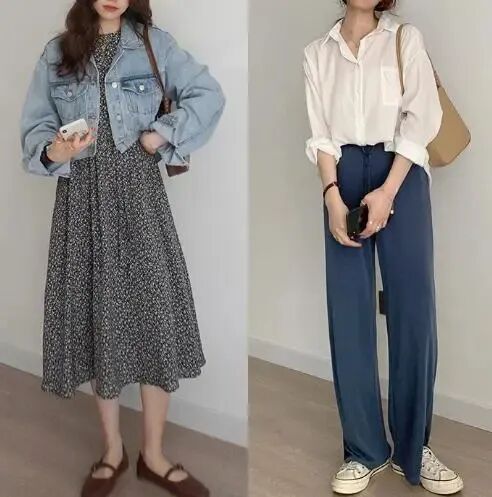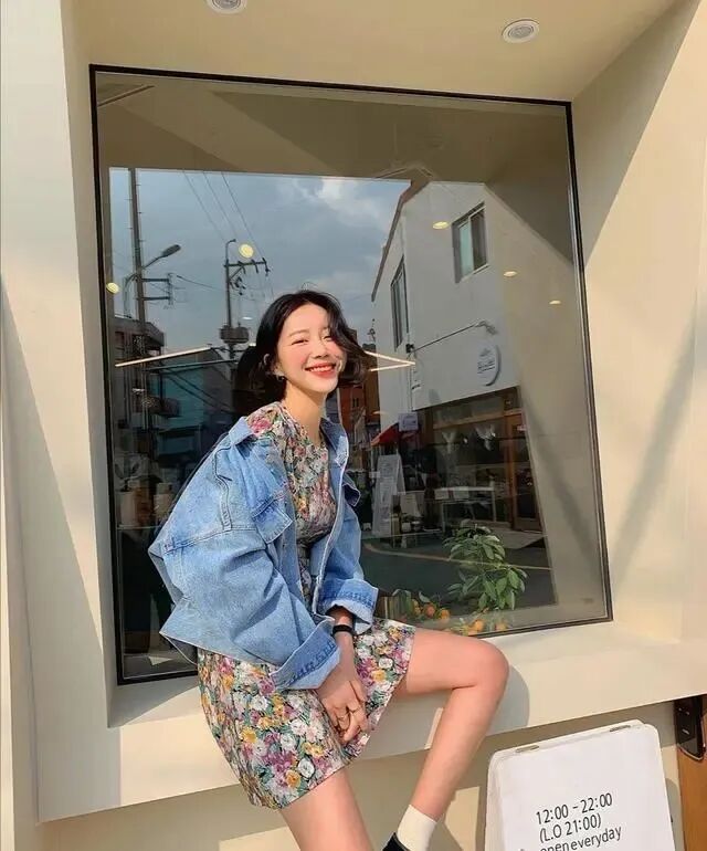 碎花长裙搭配牛仔外套也是一种很受欢迎的搭配,这种穿搭会让女生看起来很温柔,小碎花又符合春天的感觉,是每日搭配指南非常推荐的一种搭配。牛仔外套不要选择太肥大的,会显得很累赘,容易显示出身材的缺点。