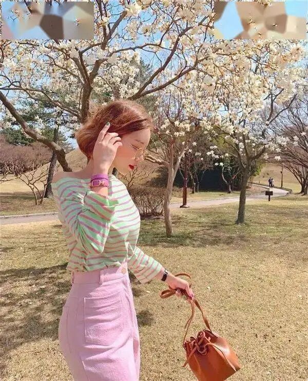 春季搭配的牛仔裤,颜色大多是浅色系的,浅蓝色给人一种小清新的感觉,看上去也是清凉的,九分长度的牛仔裤是春天的标配,微微露出脚踝,更显苗条感。