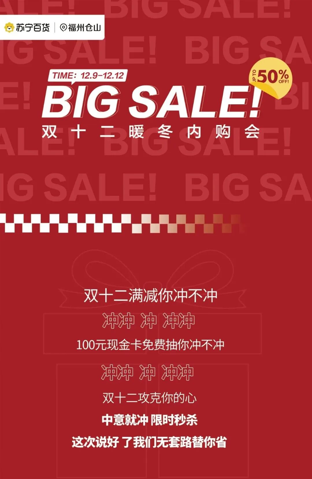 文章内容来源于公众号:福州仓山苏宁百货,点此可查看原文,内容版权归相关企业所有,本网站仅供交流学习。若涉及版权问题或存在侵权情况,请及时与我们联系,我们将第一时间进行删除处理。