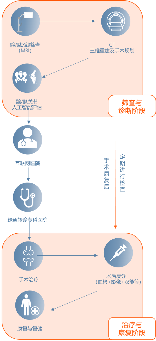 这一项目将陆续在爱康全国各个体检中心落地。此外,爱康还将与骨科专科医院建立合作联盟,进一步把“骨关节疾病的筛查逐渐升级为智能化的精准评估、精准诊疗的全流程服务”。依托AI技术,爱康得以搭建起一整套从体检筛查到诊疗的一体化健康管理体系。未来,体检行业能够参与的医疗环节的深度和广度将不断增加。“爱康还会继续寻找好的合作伙伴,不断走出传统的筛查局限,借由科技创新驱动的医疗服务模式发挥更大的价值。“张黎刚表示。