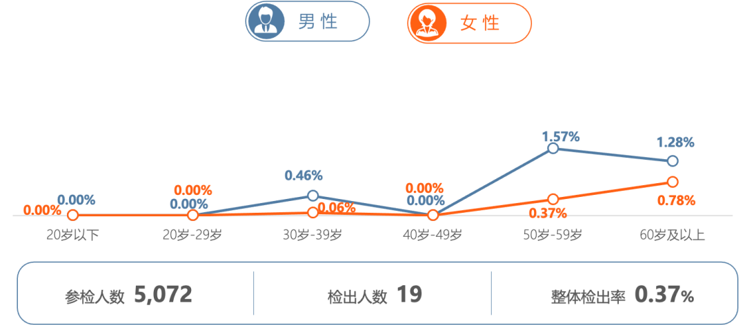 目前,在体检机构应用的骨密度检测方法包括单能/超声骨密度筛查及双能骨密度筛查。根据爱康旗下体检中心2023年1月- 2023年12月单能/超声骨密度检查在健康体检中的横断面研究数据显示,骨量减少(单能/超声)检出率达33.20%,其中50岁以上女性骨量减少(单能/超声)检出率出现快速增长,60岁-69岁到达峰值;40岁以上人群骨质疏松(单能/超声)检出率随年龄增长而增高,女性50岁以后检出率远高于同龄男性。