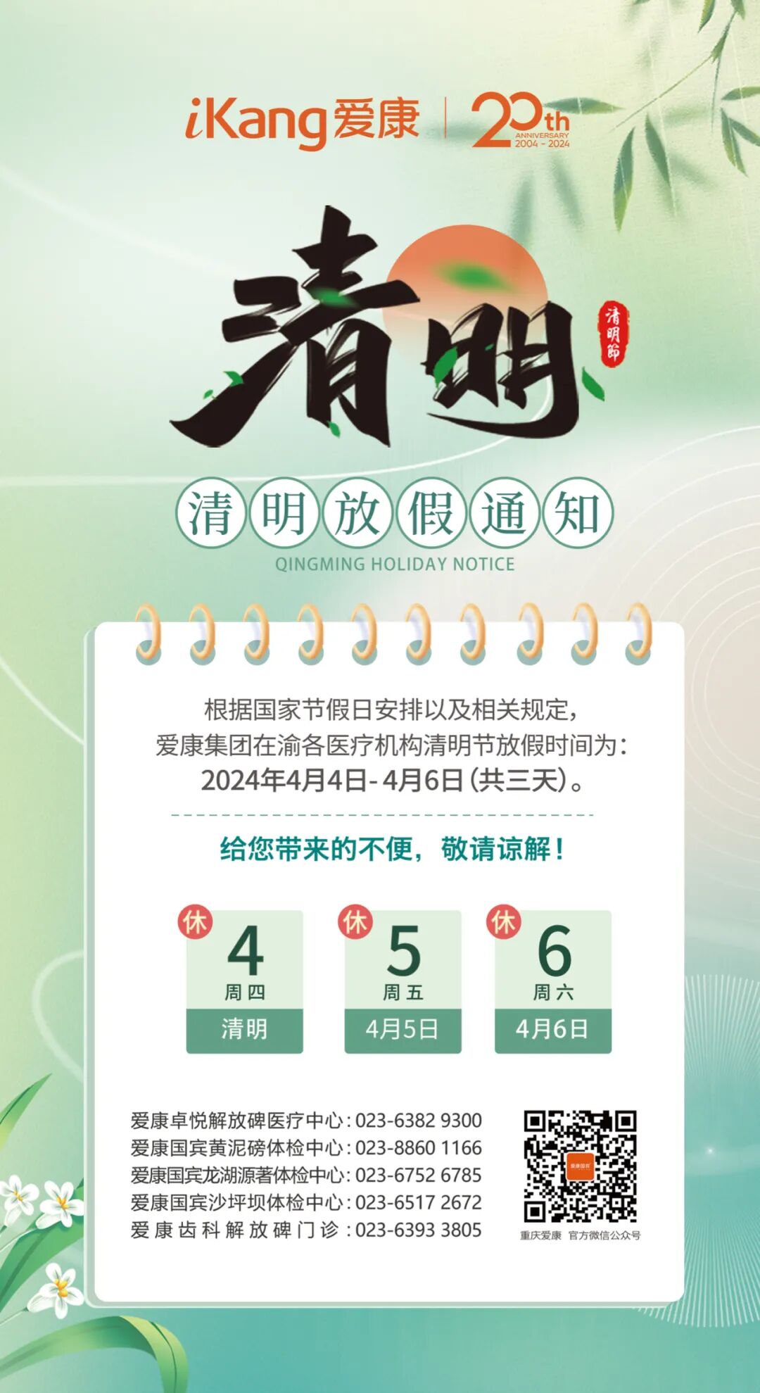 摘要:爱康重庆|各医疗机构春节放假通知