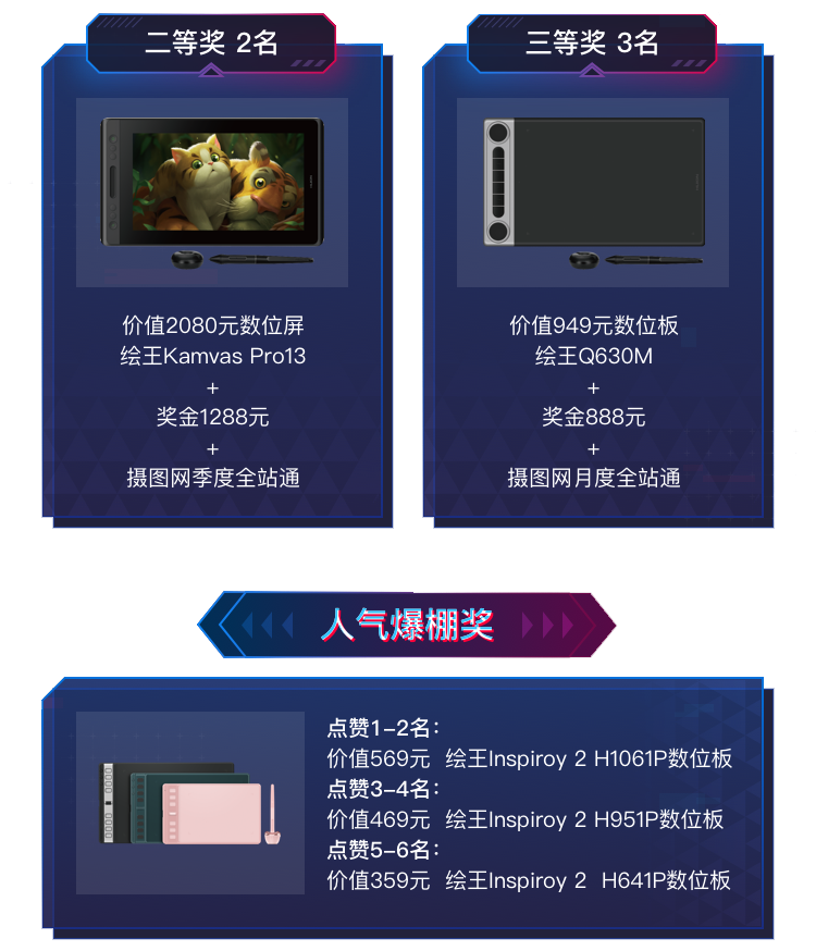 1、参赛作品需在不影响作品整体美观度的基础上,将摄图网及绘王Logo作为活动官方标识放置在作品中;