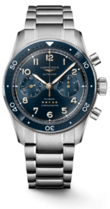 浪琴表先行者系列推出一款具备飞返功能的腕表。采用全新专属抗磁机芯,内置硅游丝,动力储备可达68小时。凭借精准的走时表现,获瑞士官方天文台认证(COSC)。透过透明表背,机芯的精妙细节一览无余,包括刻有代表先行者系列的地球标识和Longines Flyback字样的定制摆陀。全新表款融合优雅美学风格与精湛细节,呈现缎纹、亚光、抛光与雕饰工艺。双向可旋转表圈采用蓝色陶瓷材质,饰以夜光刻度,让表款充满鲜明的风格印记。搭配蓝色太阳纹表盘,42毫米精钢表壳搭配可更换的精钢表链。
